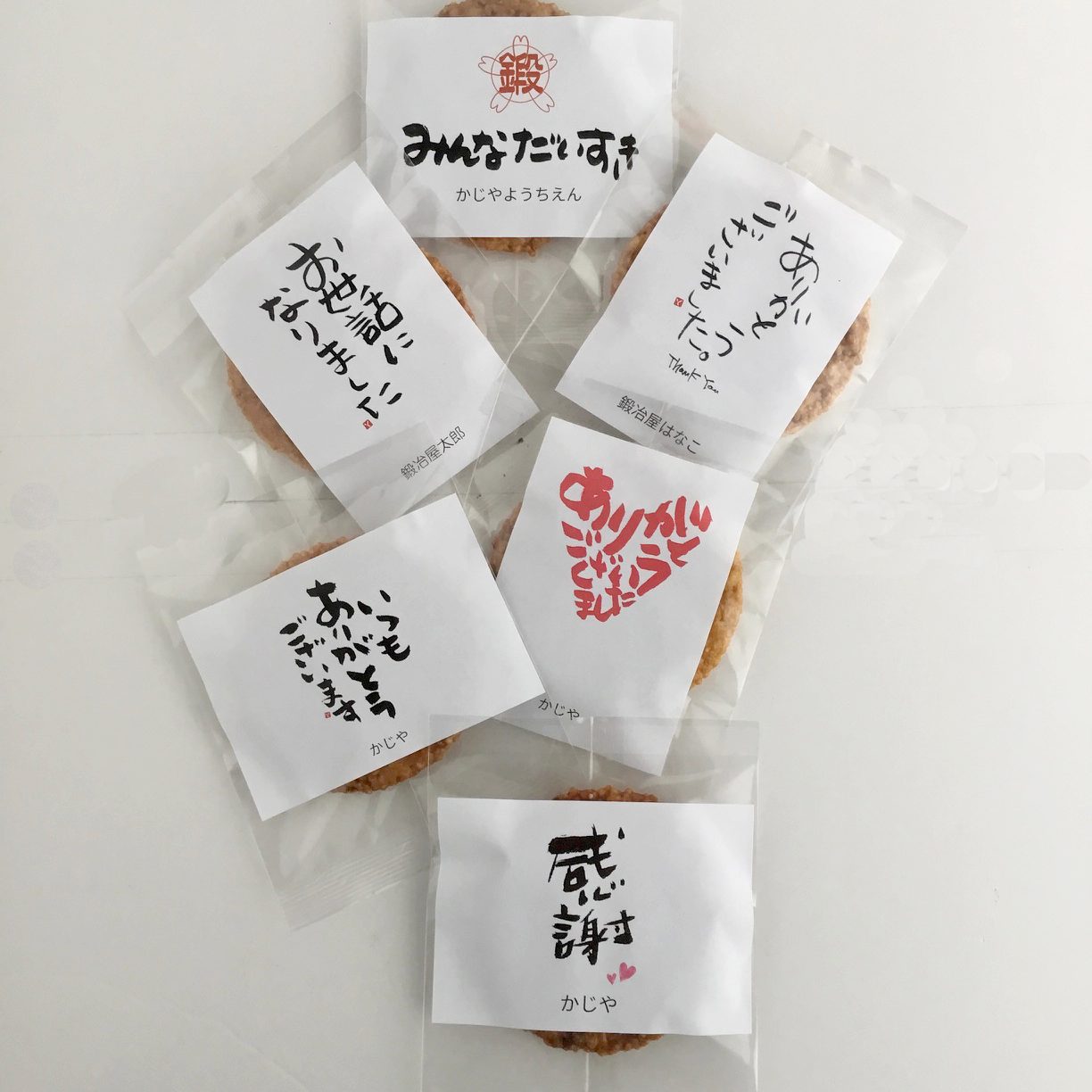 おせんべいにメッセージやイラストを直接想いを刻んできました。